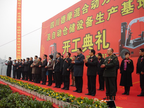 12月31日上午,四川德摩叉車及物流設備生產基地在城西工業園區舉行了開工典禮。市委書記唐利民、市長劉成鳴、政協主席陳宗淑,上海德摩機電(集團)有限公司執行董事長鄭有為出席開工典禮。