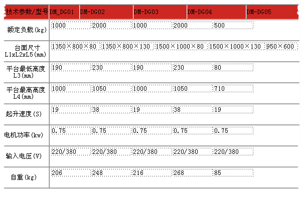 電動升降平臺DM—DG_2.0產品描述 電動升降平臺主要用于車間、倉庫各個工作擱層間貨物上下運送,立體車庫和地下車庫層高間汽車舉升等,產品液壓系統設置防墜、超載安全保護裝置,各樓層和升降臺工作面均可設置操作按鈕實現多點控制,產品結構堅固,承載量大,升降平穩,安裝維護簡單方便,是經濟實用的低樓層間替代電梯的理想貨物輸送設備,